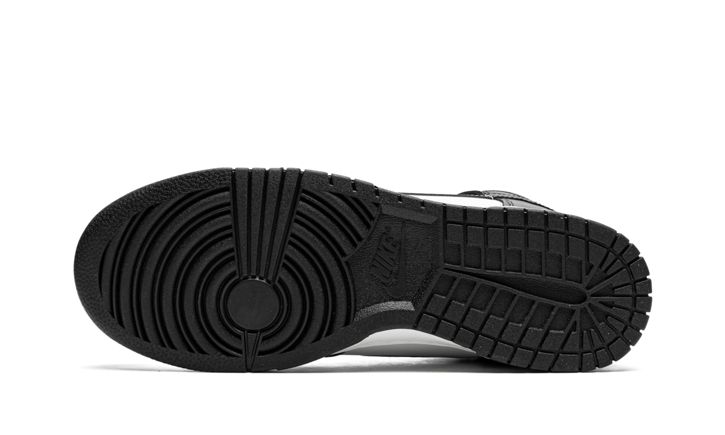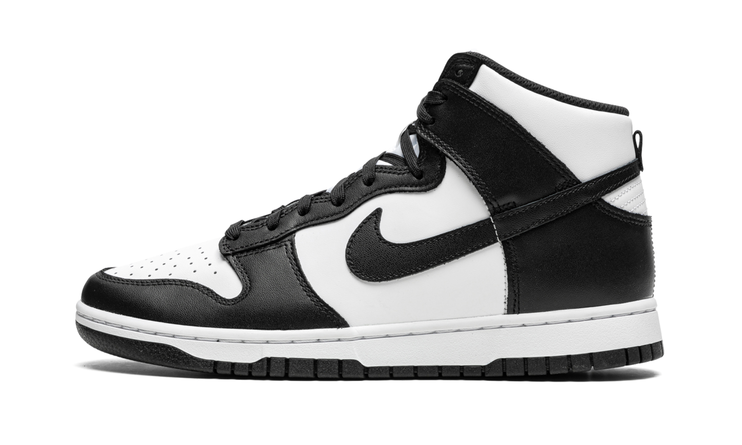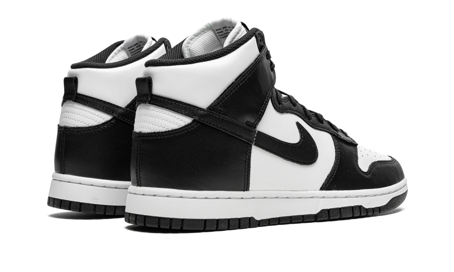 La Nike Dunk High "Black/White" o "Panda" è una colorazione bicolore, bianca e nera, della scarpa da basket vintage lanciata nel gennaio 2022. Un classico intramontabile, la Dunk in bianco e nero presenta pelle bianca sulla punta traforata, sul pannello centrale, sul colletto e sul tallone. La base di colore neutro è in contrasto con le sovrapposizioni in pelle nera e il marchio Swoosh. L'aspetto bicolore della scarpa prosegue con una fodera interna nera, una linguetta in nylon bianco e un'etichetta in nylon bianco con il marchio "Nike" e lo Swoosh neri. Lacci neri, intersuola bianca e suola nera completano il look. Data di uscita: 27 gennaio 2022 Panda - Nero / Bianco
